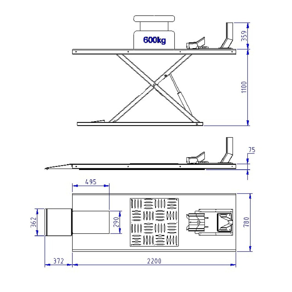 In combinatie met een verlengstuk voor de voorkant van de lift, is deze ook geschikt voor trikes.